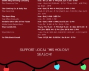 This directory is a list of holiday hours for Downtown Sheridan for at-a-glance information on your favorite shops! Thank you for supporting local this holiday season from the DSA! Happy holidays!