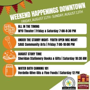 Weekend Happenings Downtown 8.11-8.13 By Downtown Sheridan Association|2023-08-11T08:22:32-06:00August 11th, 2023|Comments Off on Weekend Happenings Downtown 8.11-8.13
