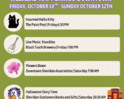 As we make our way into October, stay warm with these awesome activities in Downtown Sheridan this weekend! The Paint Post is continuing their October themed series of classes with a Haunted Hallo Kitty tonight at 6:30 PM! Get your spot reserved for a fun night among friends and fellow artists. This evening Knuckles is returning to Black Tooth Brewing - Sheridan for a live performance! Bring some friends to enjoy awesome music and beverages at 7 PM! Flowers down has been rescheduled for this Saturday at 7 AM! Join the DSA for this amazing volunteer opportunity to help retire our main street petunias for the cold months ahead. Call the DSA for more info!! Sheridan Stationery Books and Gifts is hosting a special Halloween Story Time Saturday at 10:30 AM! Costumes encouraged for this awesome story time complete with treats, crafts, and more! Honorable mention for the 28th Annual Fiber Art Show that is now on display at the Sheridan Fulmer Library through October 30th! Be sure to stop by and enjoy the incredible fiber art showcased this month. Happy weekend and have an amazing Friday!